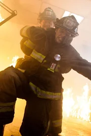 • CHICAGO FIRE -- "Shoved In My Face" Episode 211 -- Pictured: (l-r) David Eigenberg as Christopher Herrmann, Taylor Kinney as Kelly Severide.