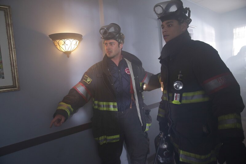 • Kelly Severide (Taylor Kinney, l.) und Peter Mills (Charlie Barnett) setzen in einem brennenden Haus ihr Leben aufs Spiel.