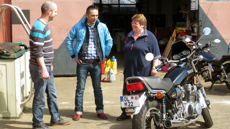 Trödelprofi Mauro Corradino (Mitte) mit Ute und einem Kaufinteressenten (li.)