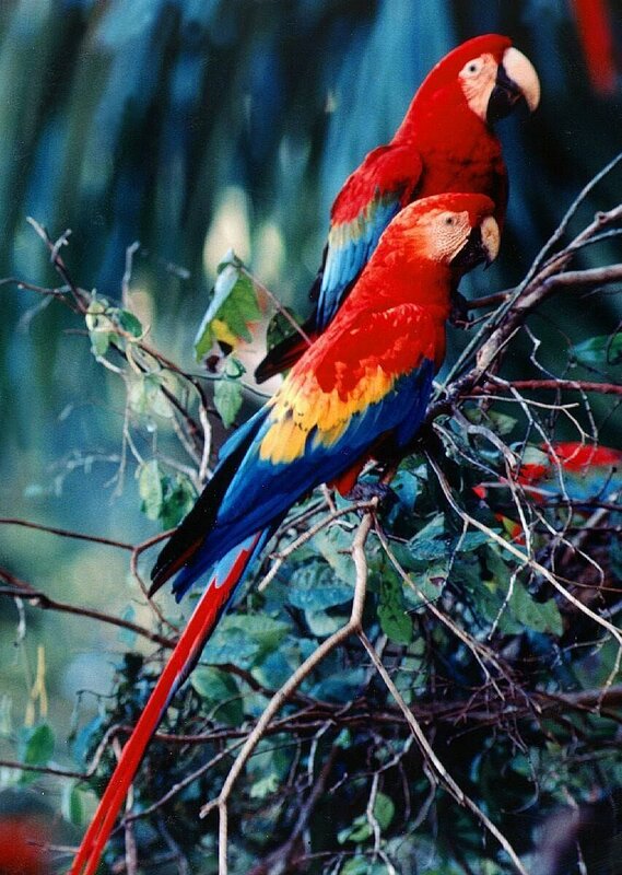 Eine Meeresschildkröte mit lederartigem Panzer und ein farbenprächtiger Papagei (das Foto zeigt zwei rote Ara) auf St. Vincent, eine kleine Insel in Westindien "erzählen" von einer sehr sonderbaren, aber erfolgreichen Weise des Artenschutzes.