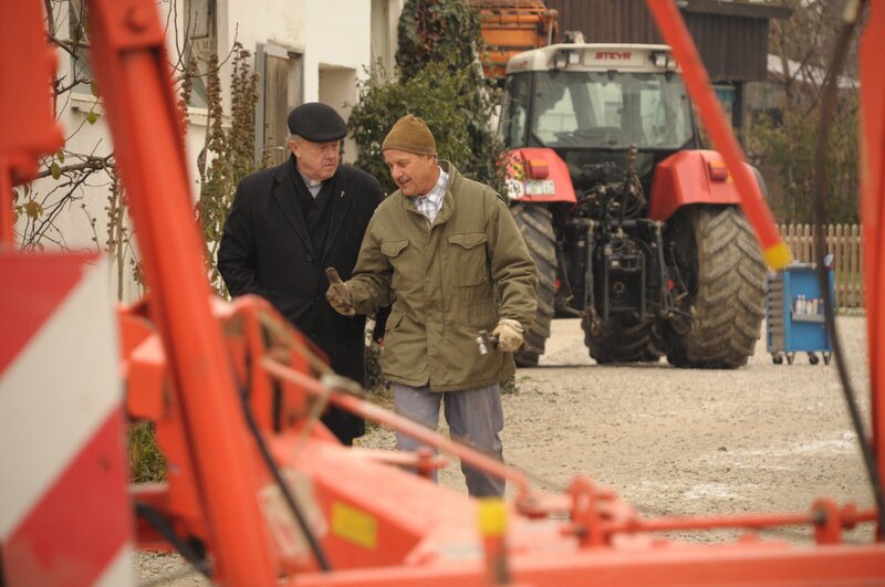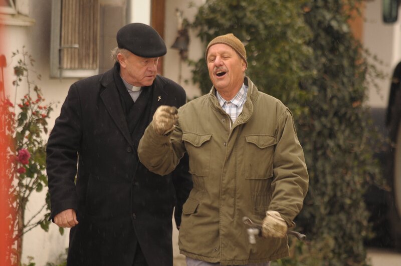 • Schattenhofer tut dem Pfarrer gegenüber so, als würde ihn seine Wahlniederlage nicht weiter belasten. Von links: Pfarrer Kurz (Hans Stadlbauer) und Lorenz Schattenhofer (Werner Rom).
