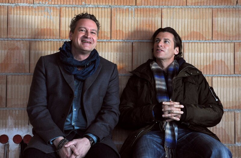• Sebastian versteht sich ausgezeichnet mit dem Architekten des Traumhauses, das er für sich und Annalena bauen möchte. Von links: Frank Färber (Stephan Benson), Sebastian Wildner (Herbert Ulrich).