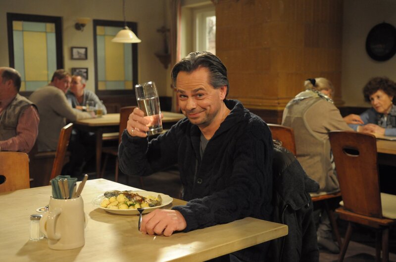 Bayerisches Fernsehen DAHOAM IS DAHOAM, FOLGE 1287, "Bamberger im Abseits". Bamberger verabredet sich mit dem Fußballexperten Michael Sporer. Von links: Roland Bamberger (Horst Kummeth), Patrick Westenrieder (Lucas Bauer) und Michael Sporer.