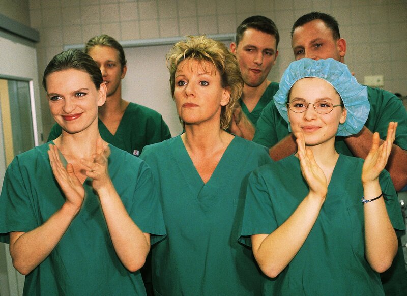 Nach gelungener Operation ist Dr. Schmidt der Applaus seiner Kollegen (v.li. Kerstin Thielemann, Mariele Millowitsch, Mina Tander) sicher.