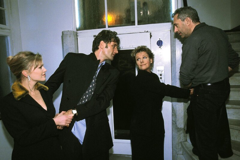 Leichte Verwirrung der Gefühle? Nikola (Mariele Millowitsch, 2.v.r.) und Dr. Schmidt (Walter Sittler, 2.v.l.) begegnen sich mit "ihren Dates" (Anna Loos, l. und Robert Giggenbach, r.) im Treppenhaus.