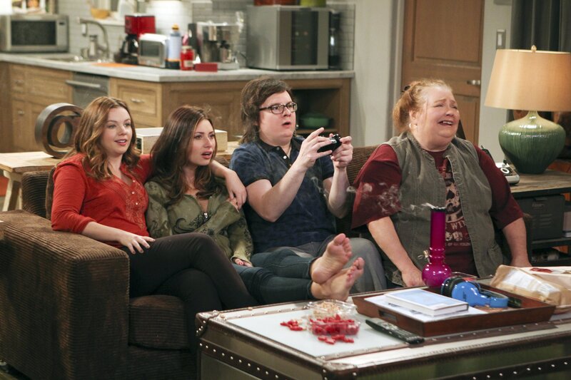 Barry (Clark Duke) fühlt sich sichtlich wohl im Kreise von Berta (Conchata Ferrell), Jenny (Amber Tamblyn) und Brooke (Aly Michalka).