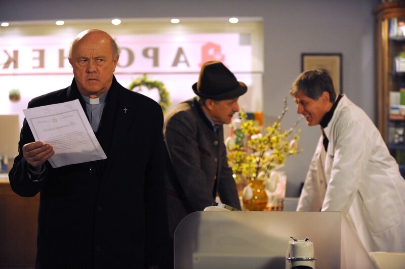 Fanny wird Zeuge, als Vroni als Bürgermeisterin gefordert wird und wittert ihre Chance. Von links: Lorenz Schattenhofer (Werner Rom), Veronika Brunner (Senta Auth) und Fanny Lechner (Katrin Lux).