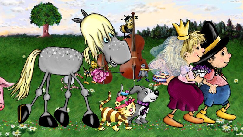 Königslieder: Bettelmanns Hochzeit: Der kleine König und seine Freunde spielen Theater und inszenieren Märchenlieder. Nicht immer klappt das wie am Schnürchen. Mal dauern die Vorbereitungen zu lange, ein andermal will der König die Prinzessin nicht küssen. Ehe der Vorhang fällt wird aber alles gut. Der kleine König und die kleine Prinzessin spielen das Hochzeitspaar, und alle Tiere weit und breit sind eingeladen. Alle tanzen und machen Musik.