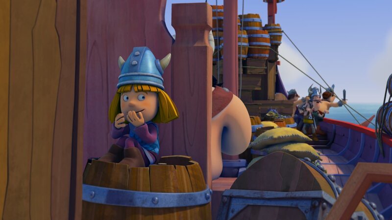 Nichts könnte die Männer von Sven dem Schrecklichen besser ablenken als der Gesang einer Meerjungfrau. Hauptsache, sie bemerken nicht, dass nur ein verkleideter Tjure singt und Wickie in der Zwischenzeit das Seeräuberschiff kapert.