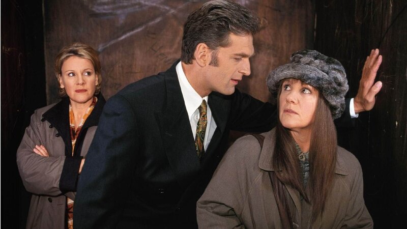 Nikolas (Mariele Millowitsch, l.) Schwester Luise (Mariele Millowitsch in einer Doppelrolle, r.), die gerade von ihrem Freund verlassen worden ist, lernt Dr. Schmidt (Walter Sittler) kennen und erliegt sofort seinem Charme.