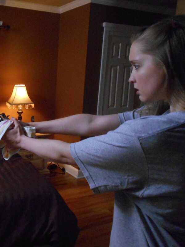 Cinnamon aims a gun at Linda while she is asleep in bed.