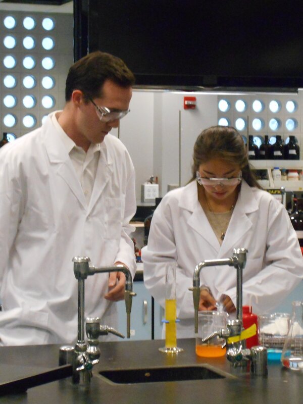 Jarrod in lab with young attractive student.