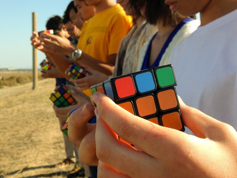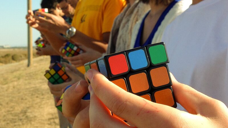 Schüler versuchen, den Zauberwürfel zu lösen.