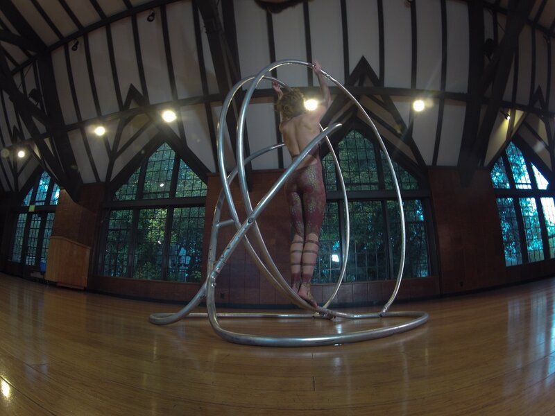 Demonstration von Biotechnik anhand einer Tanzperformance einer Tänzerin der "Capacitor"-Tanzgruppe.