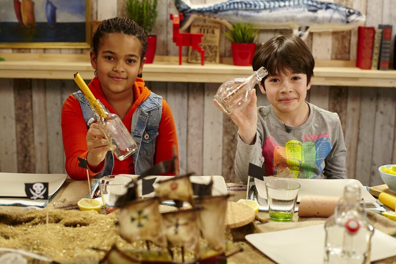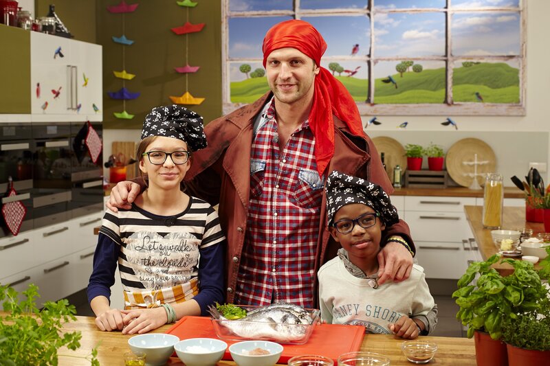 Piratenparty Piratinnen und Piraten aufgepasst: Alex und die Koch-Kids stechen heute in See! Und was wird auf so einem Piratenschiff gegessen? Fisch im Ganzen! Anna-Sophie und Amos bereiten mit Alex eine Goldbrasse im Kräutermantel zu. Außerdem gehört zu einem echten Piratenessen natürlich auch ein geheimer Schatz. Welche süße Überraschung sich die drei Köche bloß überlegt haben? David, Elias, Estelle und Ashley basteln währenddessen an wilder Piratendekoration: Totenkopffahnen und eine Flaschenpost mit selbstgemalter Schatzkarte. Na dann: Volle Kraft voraus!