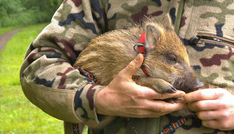 Für Frischling Frida und ihren Jagdausbilder Immo Ortlepp ist heute das erste Training. Denn sie soll später mal eine Fährtensau werden. Dazu muss sie lernen an der Leine zu laufen und zu gehorchen.