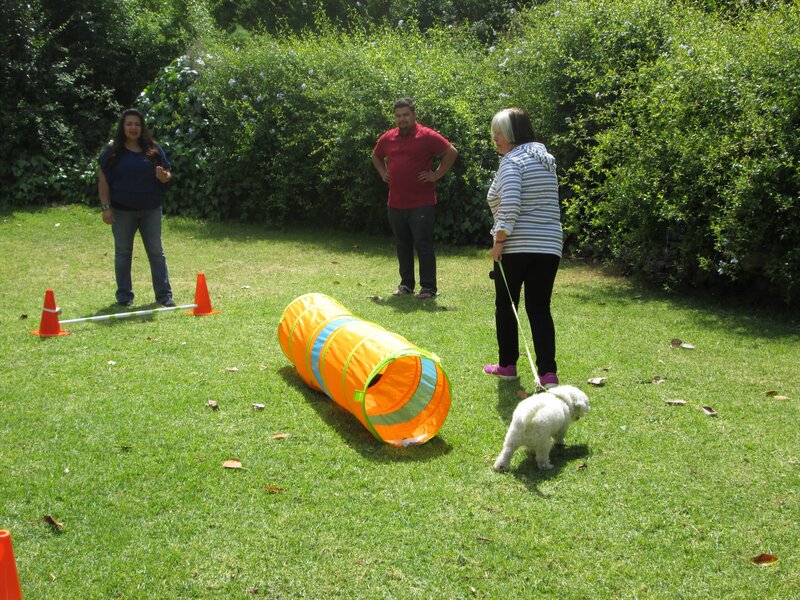 Jacqueline Wilson arbeitet mit den kleinen Hunden und ihren Inhabern