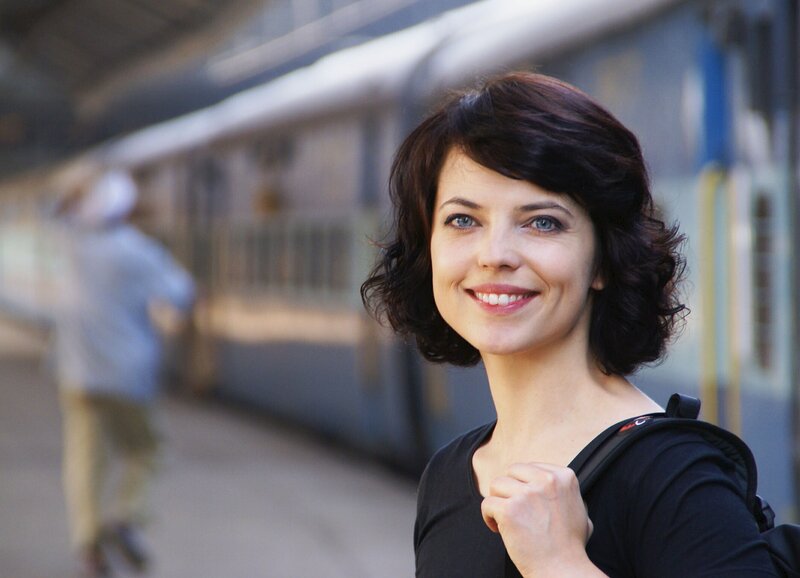 SF Spezial: Fernweh Zug um Zug Folge 1 Moderatorin Mona Vetsch am Bahnhof von Mumbai