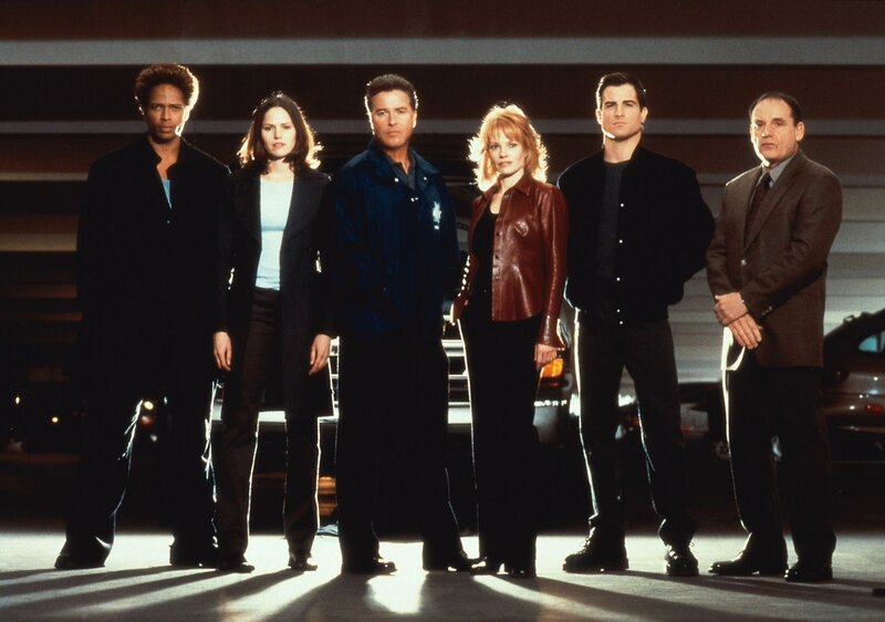 Gil Grissom (William Petersen, M.l.) und sein starkes Team (v.l.): Warrick (Gary Dourdan), Sara (Jorja Fox), Gil Grissom (William Petersen), Catherine (Marg Helgenberger), Nick (George Eads) und Captain Jim Brass (Paul Guilfoyle).