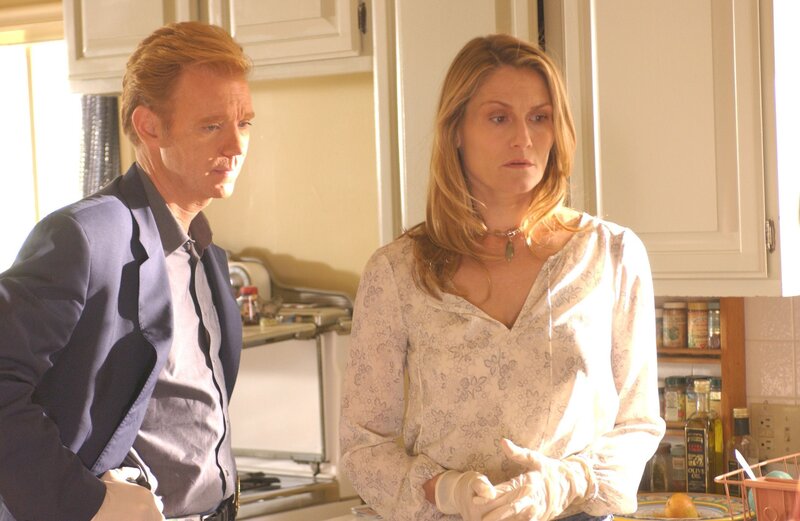 • Die Anwältin Belle King (Karen Sillas, li.), auf die Horatio und sein Team anhand eines am Tatort gefundenen Bleistifts gestoßen sind, ist ebenfalls radioaktiv verstrahlt und hat nur noch eine Woche zu leben.