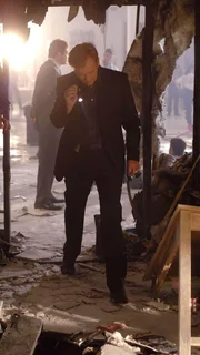 Horatio (David Caruso, r.) und Ryan (Jonathan Togo) finden in dem fast völlig zerstörten Gebäude Hinweise darauf, dass das Opfer mit dem Bau einer Bombe beschäftigt war.