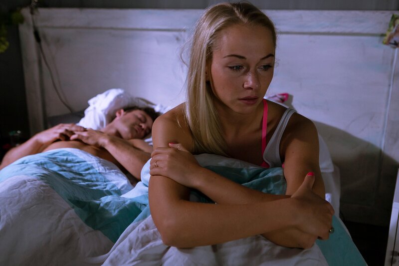 Während Ben (Jörg Rhode) schläft, brechen Julias (Jenny Bach) Zweifel an der Entscheidung gegen das Kind wieder auf.