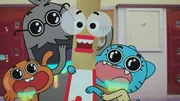 Hinter: Richard. Vorne, v.li.: Darwin, Gumball.