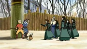 Versehentlich landen Aang, Sokka und Katara auf der Insel Kyoshi. Die Kriegerinnen dort misstrauen allen Fremden und greifen die Gruppe an. Sie beruhigen sich erst, als Aang sich als Avatar zu erkennen gibt und seine Kräfte demonstriert. Jetzt werden er und seine Freunde sogar als Ehrengäste behandelt. Aang geniesst die Verehrung, die man ihm entgegenbringt, und würde gerne länger bleiben, aber Katara drängt auf einen schnellen Aufbruch. Noch ahnen sie nicht, dass die Häscher der Feuernation ihnen dicht auf den Fersen sind.