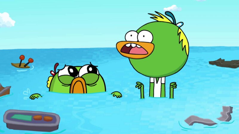 Swaysway und Buhdeuce machen im Teich eine Bruchlandung. Schaffen es die beiden, sicher an Land zu kommen?
