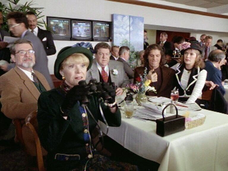 • Gespannt beobachtet Graham (George Wendt, Mi.) mit seinem Bruder Randy (Jeff Yagher, re.), dessen Freundin Tiffany (Karen Mayo-Chandler, re.) und seinen Freunden Randall (William Bogert, li.) und Gwen (Shani Wallis, li.) das Pferderennen.