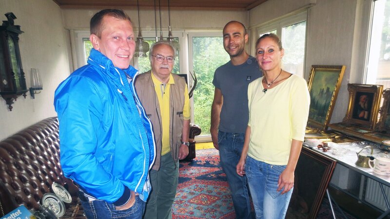 Ob Otto (2.v.li.) den alten Heinkel Roller verkaufen wird? Christina und Toni (re.) sind gespannt.