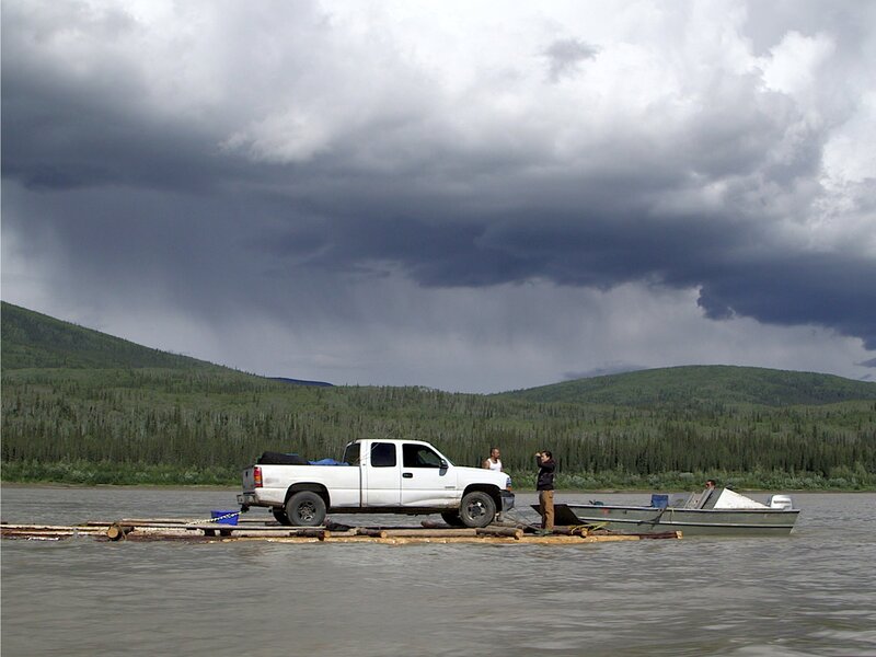 Der Wildnisbewohner Joey Zuray will zwei Lieferwagen auf einem Floss nach Tanana transportieren. Für die 200 Kilometer lange Strecke hat sich der Aussteiger den Tag der Sommersonnenwende ausgesucht.