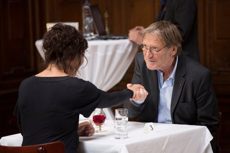 Sieben Frauen und sechs Männer, fast alle jenseits der 70, treffen sich zum Speeddating. Das Besondere: 13 Schauspieler, 19 Kameras aber kein Drehbuch und keine Wiederholung. Lediglich auf der Basis von Figurenprofilen lässt sich ein hochkarätiges Schauspielerensemble auf intensive Begegnungen ein, getragen von Empathie und der Kunst der Improvisation. Der Fernsehfilm "Altersglühen Speed Dating für Senioren" von Jan Georg Schütte erzählt das Speeddating als Ganzes. "Altersglühen Die Serie" konzentriert sich auf eine einzige Figur pro Folge, die sie durch das Treffen begleitet. Mario Adorf ist Johann Schäfer: "Wie in der Tanzschule" Der Ex-Unternehmer und Vater eines Sohnes hat den Tod seiner geliebten Frau noch nicht verarbeitet. Auf dem Sterbebett musste er ihr schwören, sich umgehend eine neue Partnerin zu suchen. Allein lebensunfähig, hat sie ihn betitelt. Doch das fällt ihm zunächst ausgesprochen schwer. Der ehemalige Rheinländer fühlt sich mit den Kandidatinnen überfordert, doch sein Fluchtversuch scheitert am Gastgeber. Johann Schäfer, genannt Hans, ist kein Mann der vielen Worte. Er hört lieber zu. Doch plötzlich gibt es eine Kandidatin, die den Zauber in ihm entfachen kann, und der Konkurrenzkampf ist eröffnet.