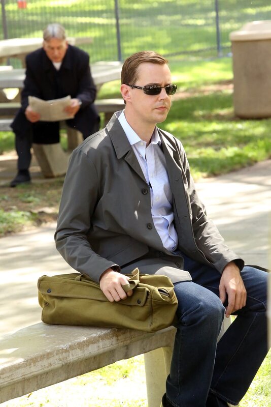 • Versuchen herauszufinden, wer der Mörder von Dr. Valerie Barnes ist: Gibbs (Mark Harmon, hinten) und McGee (Sean Murray, vorne) ...
