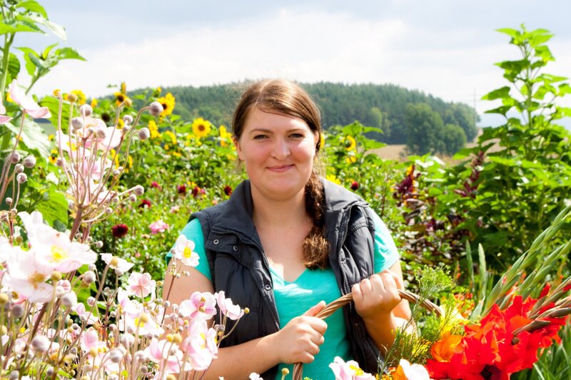 • Gastgeberin Johanna Bauer schneidet Blumen für die Dekoration.