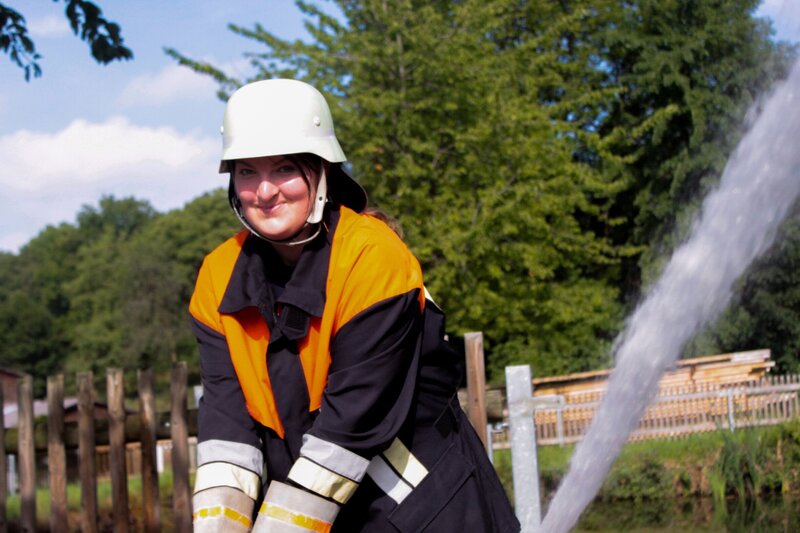• Gastgeberin Johanna Bauer bei einer Löschübung.