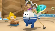 Als die Guppies auf einer Insel stranden, weil der Tank ihres Bootes leer ist, bauen sie sich ein Segelboot. Herr Zackenbarsch lädt ein zu einer Party auf See. Von einem Schleppboot wird der Dampfer gerade noch rechtzeitig vor einem Zusammenstoß gerettet.