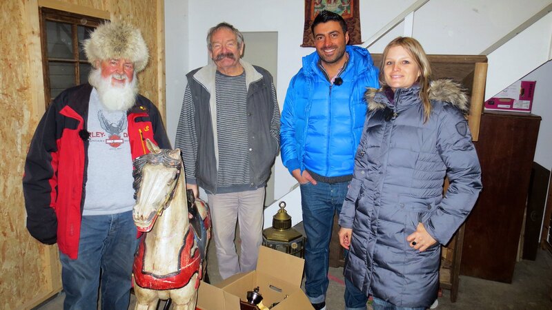 Von links: Wilfried, Peter, Trödel-Experte Sükrü Pehlivan und Sonja beim Karussellpferd-Verkauf.