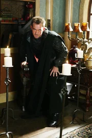 • Phoebe (Alyssa Milano, oben) nutzt ihre neu gewonnene Fähigkeit, um Dragon (Marcus Graham, unten) zu überwältigen.