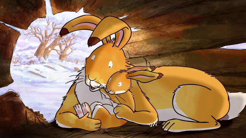 Der kleine braune Hase spielt fröhlich im Schnee. Dabei findet er unter einer Tanne einen großen Tannenzapfen. Wo ein Zapfen im Schnee liegt, gibt es doch bestimmt noch mehr. Der kleine braune Hase findet sehr viele Tannenzapfen und baut daraus einen großen Tannenzapfenbaum. Als er gerade fertig ist, kommt die kleine Feldmaus den Berg herunter gerodelt und rast ungebremst in den Tannenzapfenbaum.