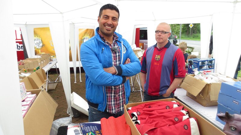Von links: Trödelexperte Sükrü Pehlivan und Maik auf dem Hausflohmarkt.