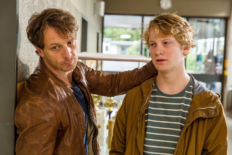 Stefan (Hendrik Duryn, M.) versucht zwischen Fabian (Paul Frank, l.) und dessen Vater (Matthias Komm) zu vermitteln.