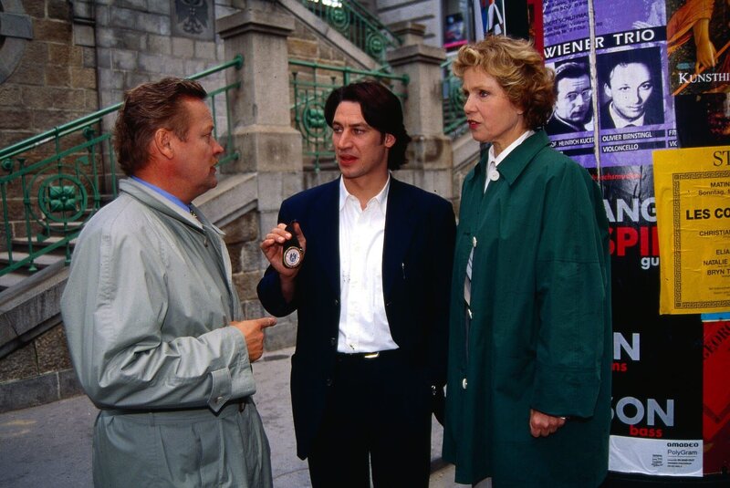 In der Wiener Kanalisation wurden Leichenteile gefunden. Der Tote konnte durch einen Zufall identifiziert werden. Kommissar Moser (Tobias Moretti, M.) vermutet, dass der Tote in einen Banküberfall verwickelt war. Mit seinem Assistenten Stockinger (Karl Markovics, l.) besucht er die Kassiererin Erika Reichel (Witta Pohl, r.), um etwas über den Bankraub zu erfahren ...