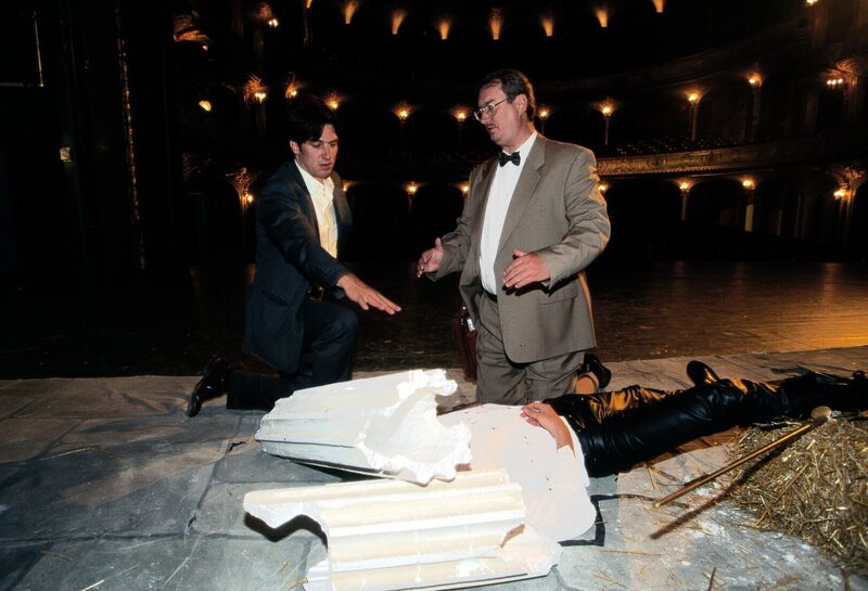 • Während der Aufführung von "Romeo und Julia" wird der Hauptdarsteller von einem herabstürzenden Dekorationsstück erschlagen. Moser (Tobias Moretti, l.) und Dr. Graf (Gerhard Zemann, r.) untersuchen die Leiche und stellen fest, dass der Unfall eindeutig ein Mordanschlag war ...