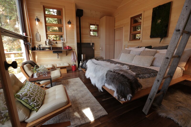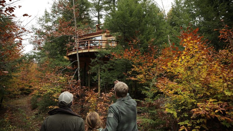 Auf nach Maine! Der Spitzenarchitekt baut seiner Kundschaft dort einen gemütlichen Unterschlupf mit flauschigen Kissen und einer 3,70 Meter langen Fensterfront in die Baumkrone. Von ihrem Kingsize-Bett aus haben Rob und Nancy einen herrlichen Ausblick auf die malerische Umgebung. Das Ehepaar wünscht sich schon lange ein Baumhaus, inklusive Bad und Kaminofen.
