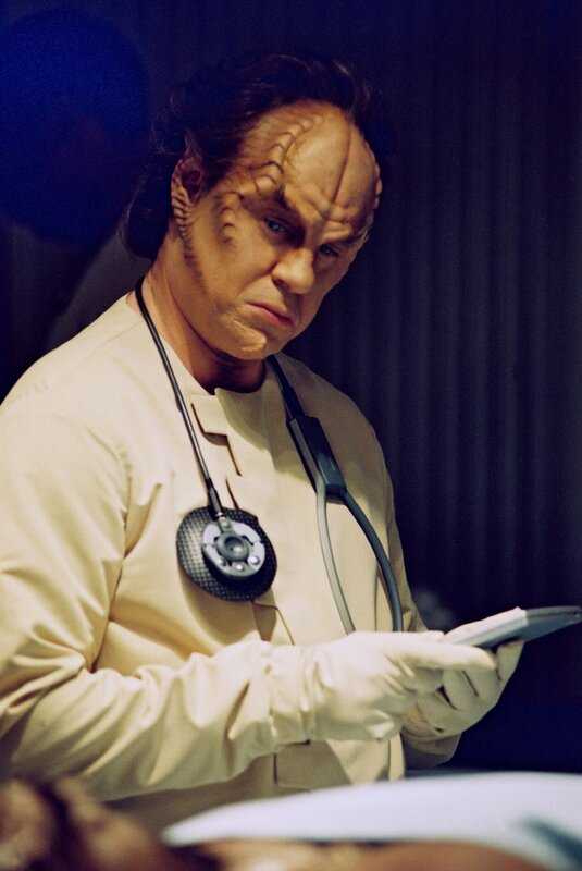 • Star Trek Enterprise Season1 EP Broken Bow, Star Trek Enterprise Staffel1 EP Aufbruch ins Unbekannte Dr. Phlox (John Billingsley) examines a wounded Klingon.