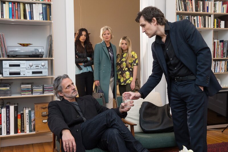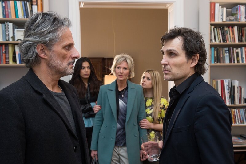 Stefan (Ingo van Gulijk, 2.v.l.) muss sich von seiner Tochter Vicky (Elizabet Bezgrebelnaya, r.) anhören, dass er für immer aus ihrem Leben verschwinden soll.