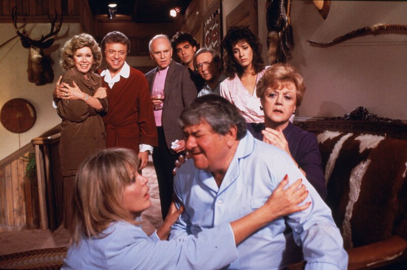 Jessica Fletcher (Angela Lansbury, r.) ist zur Verlobungsfeier von Kip Howard (George Clooney, hinten 4.v.l.) und Corrie eingeladen und findet sich plötzlich Mitten in einer Familienfehde wieder ?