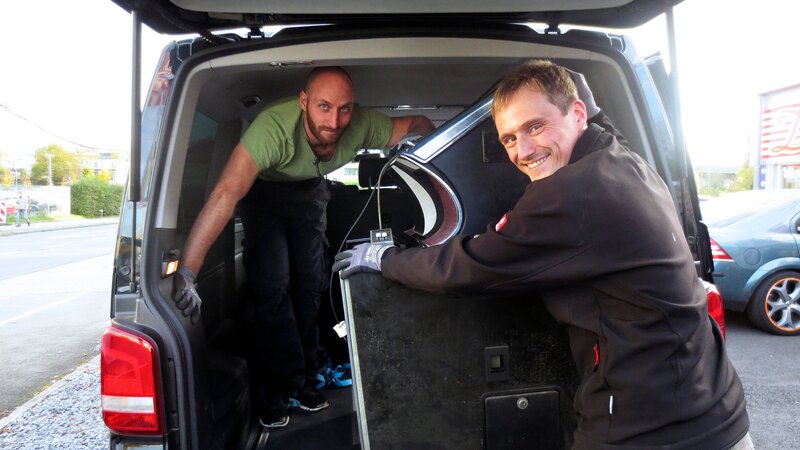 Freund André hilft Niko (re.) beim Verkauf der Jukebox.