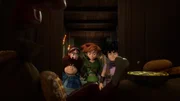 • Der Sheriff, seine Söhne, die Wache und Hund Flynn haben den Wagen mit Lebensmitteln der Dorfbewohner beladen und sind auf dem Weg ins Schloss. Robin Hood und seine Gefährten Little John und Tuck versuchen, sie aufzuhalten.